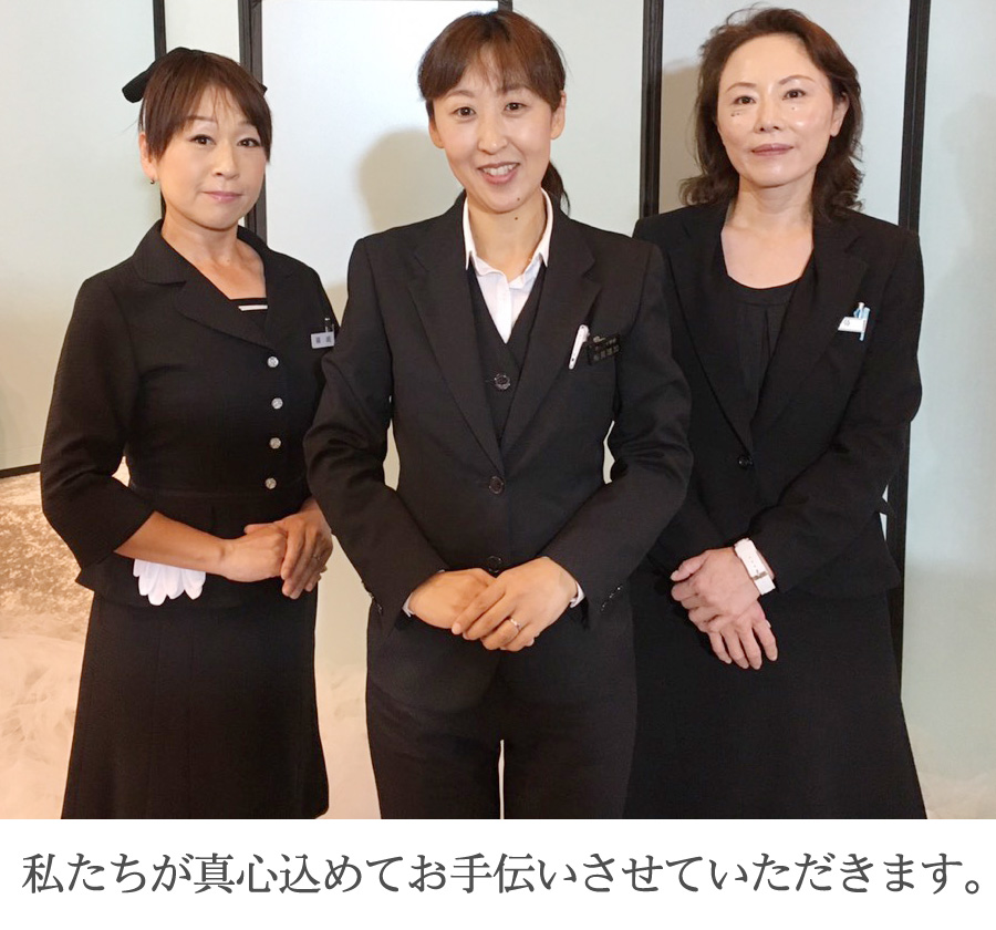 私達はご遺族の立場に立ち どのような葬儀にしたいかを十分に理解し一緒に葬儀を創りたいと思っています。